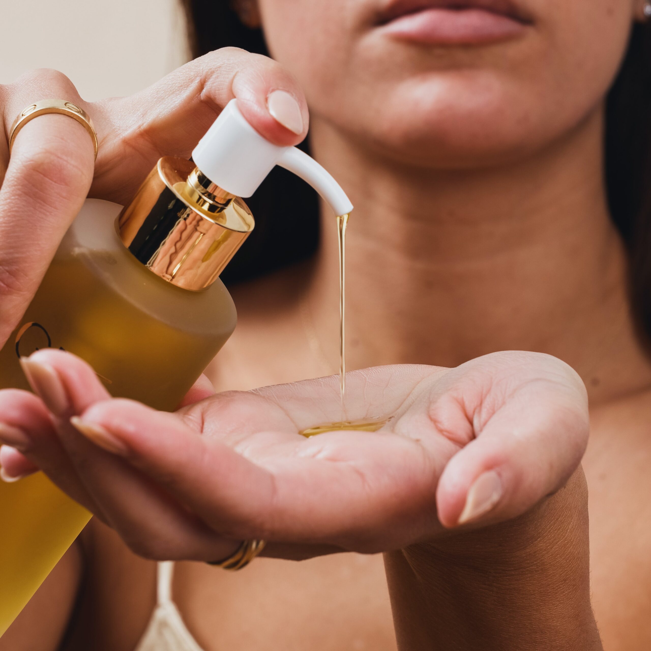 Use Liquid Gold Cleansing Oil to remove makeup, Botanical Brilliance Exfoliating Cleanser to dissolve impurities, and Luminous Botanical Face Mist to lock in hydration.