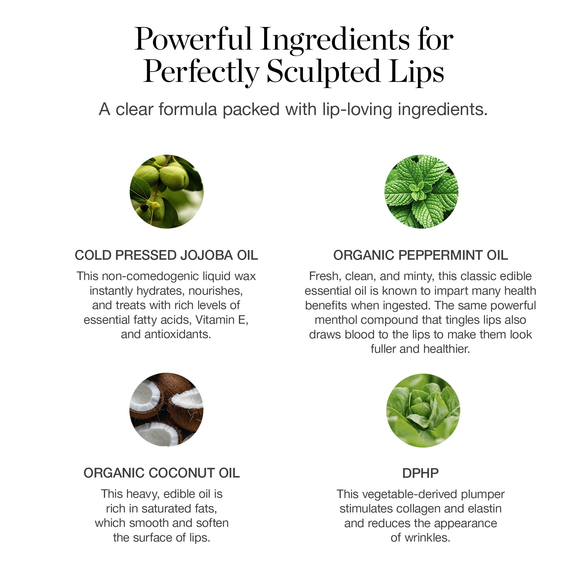 Our Sculpted Lip Oil moisturizes lips with a blend of organic oils including cold-pressed Jojoba Seed Oil. This natural lip oil lightly plumps lips with a refreshing infusion of organic Peppermint Oil. This cutting-edge formulation allows for the silky oil to melt onto lips, creating the perfect priming base before applying lipstick.